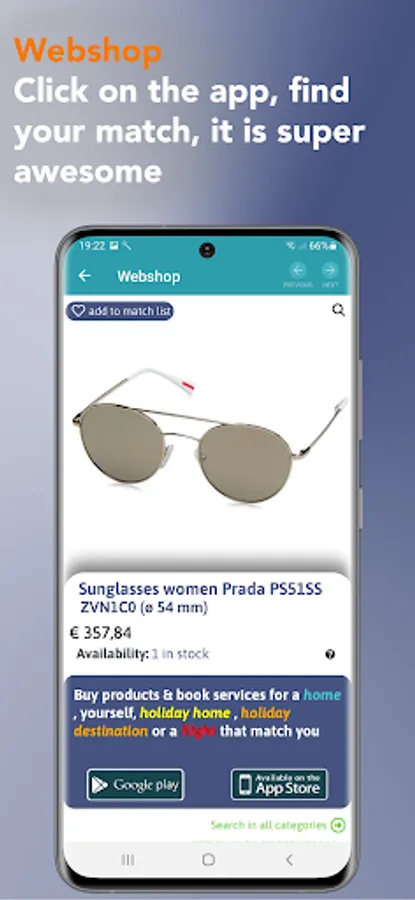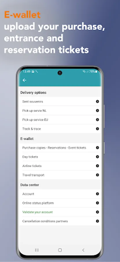 In the webshop you match household products with rental properties, and travel items with holiday bungalows or reserve entrance tickets for attractions. Use the match locator to match your delivery options across multiple purchases. In the menu you can also immediately track your packages using track and trace and save them directly in your e-wallet. In the multifunctional shopping cart you can manage, pay together and share with friends or family.
