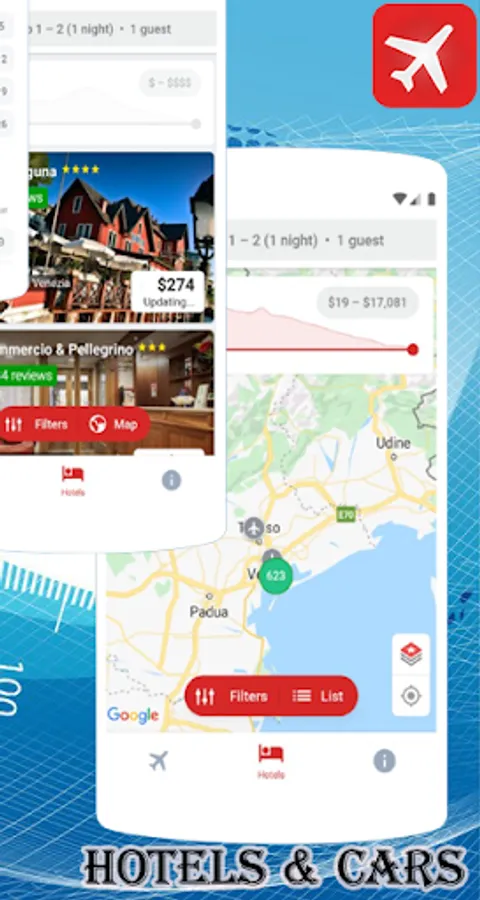 Popular agencies we comparing are such as Cheapticket, Expedia, FlightNetwork, My trip, Tripsta, Smartfares, Travelgenio, Momondo, Kayak, Venere, Hotels com, Holidaycheck, ebookers, Booking com, Priceline, HotelTonight, Kiwi, Musafir, Opodo, Orbitz, Kupibilet and much more in this list. And for hotels, we compare Expedia, Travelocity and more!