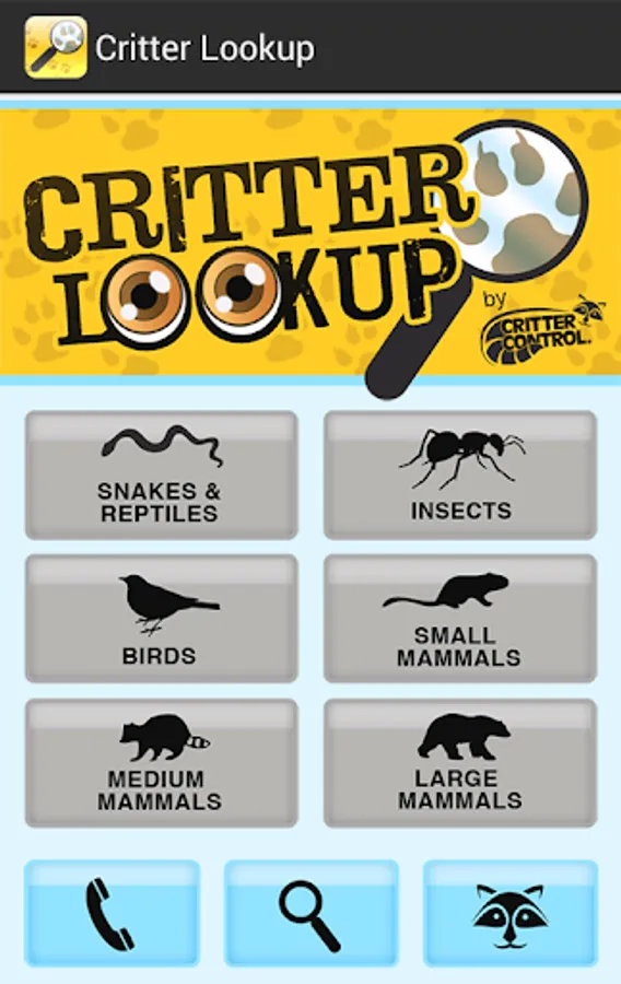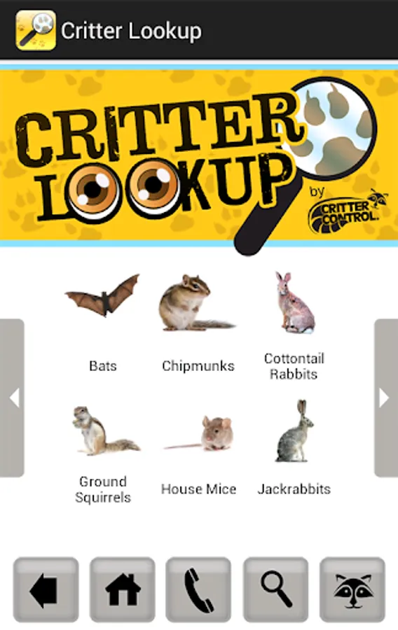 Browse the catalog of small, medium and large mammals, snakes and reptiles, insects and birds to see pictures and learn more about a critter's habitat and behavior.