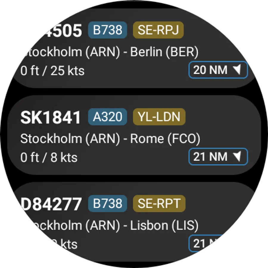 - With Wear OS you can view a list of nearby aircraft, see basic flight information and view the aircraft on the map when you tap on it