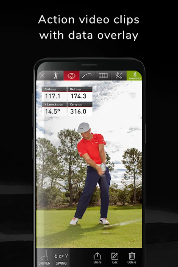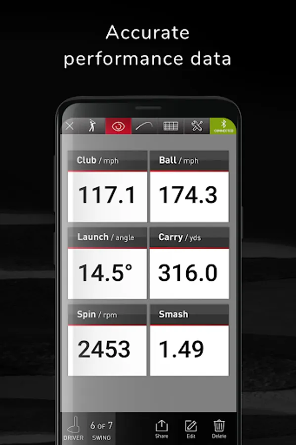 - Data available:Ball speed, club speed, smash, vertical launch angle, carry distance, spin rate