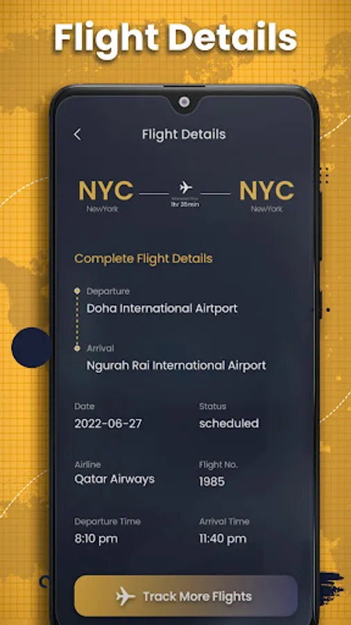Flight Tracker Satellite Radar allows you to track the real-time flight status and see the live map flight track of any commercial flight and general aviation (private, charter, etc) around the world. Track and get the latest update about upcoming and in-air flights throughout the world, and receive status alerts via push notification. Check gate assignments, delays, and cancellations and use the attractive flight map to see flight progress and check the delayed flight status with the help of radar. Wherever life takes you, count on Flight tracker satellite radar to help you to travel smarter!