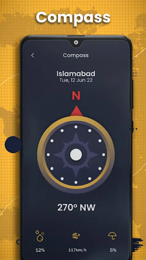 You can use Compass anytime anywhere to keep up to date with directions. You can access the simple military compass provided for this purpose.