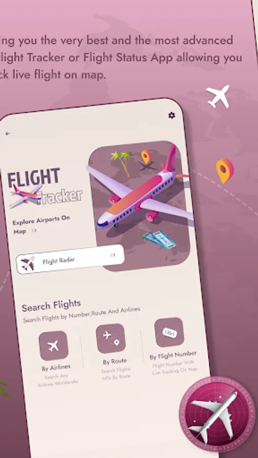 Live Flight Tracker is a flight tracker designed to be easy to use. The app's map shows airplane locations, flight and airport data. There are also radar modes that can be used for viewing airplanes in real time 2D. You can track any flight information such as the plane number, airline name, departure and arrival cities and times, status of flights at airports or on the ground, route information including altitude (for some airlines) and more!