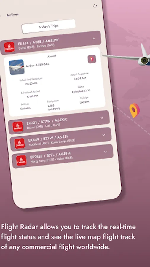 Use the Live Flight Tracker app to track your flights in order to save time and reduce stress while traveling. Access all the information you require about your plane, the airport, departure and arrival times, my-flights schedules, and airlines in a single, user-friendly app.