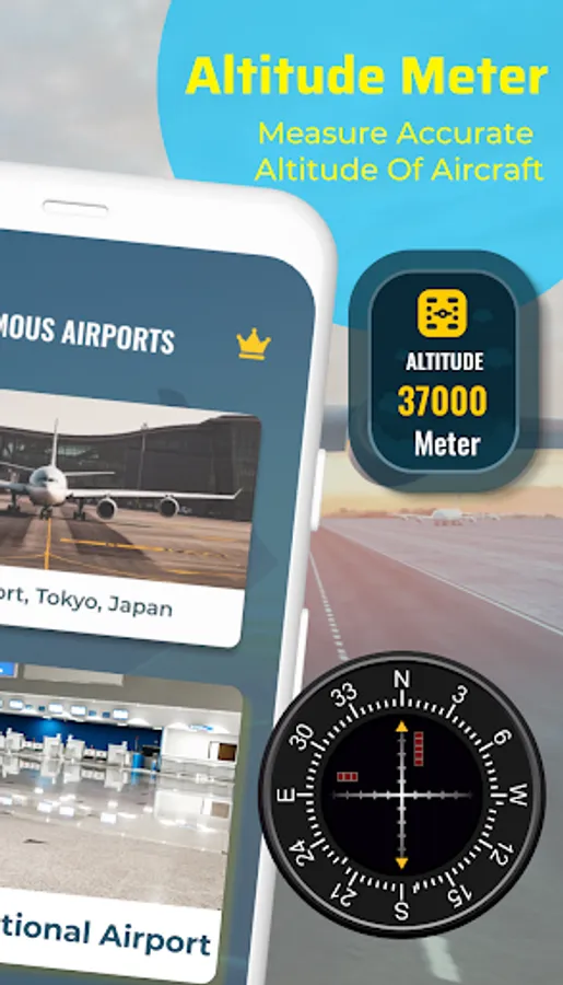 Flight Tracker By Country: Track any Plane Worldwide & Flight Board of all Departures/Arrivals Altitude Meter: Check altitude wherever you are in the Plane!