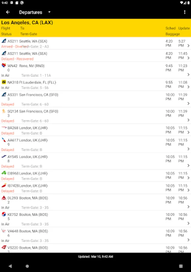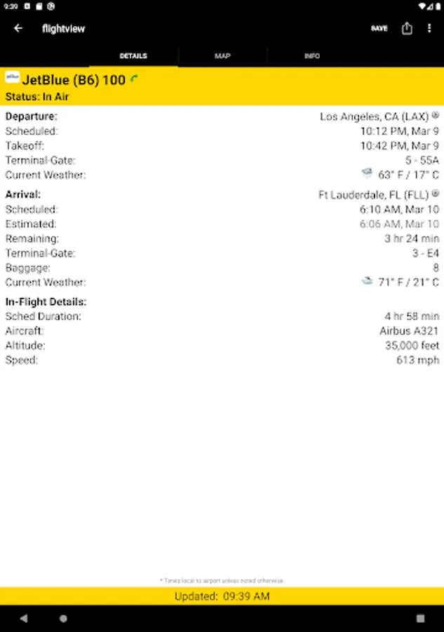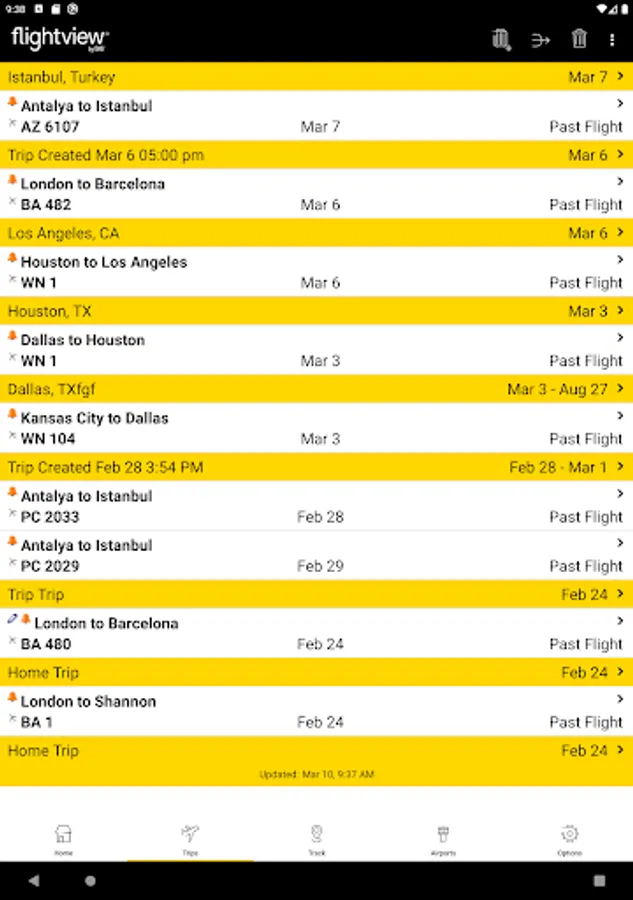 • Trips are synced between devices and with www.FlightView.com so you can quickly reference their statuses everywhere