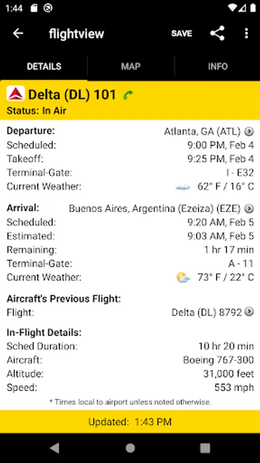 • See where the plane for your flight is coming from, and check its status via Aircraft's Previous Flight