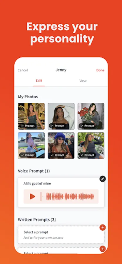 • No swiping: Send likes with conversation starters and profile prompts