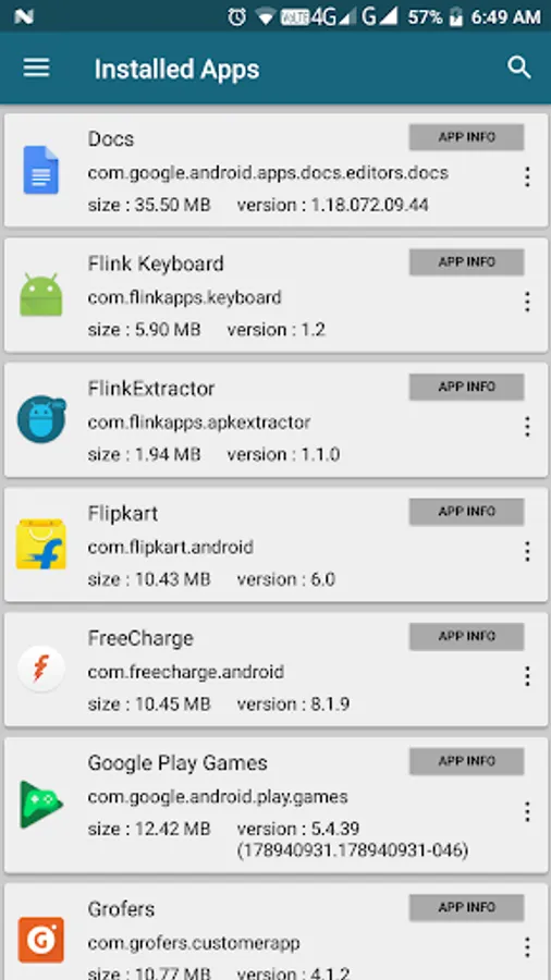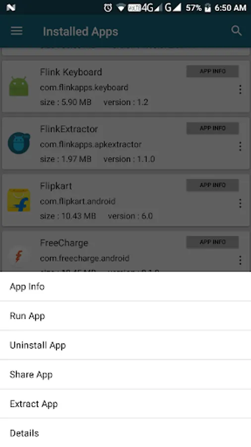 ✔One touch action (Extract app / Share app / Installed app / Uninstalled app / App info / App Details).