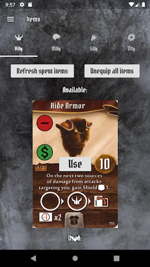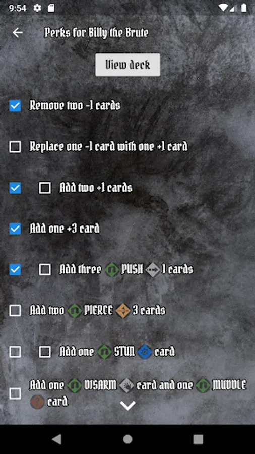 Choose your characters and set their perks, then get playing! At the click of a button the app will draw as many cards as is appropriate and give you a summary of their effects.