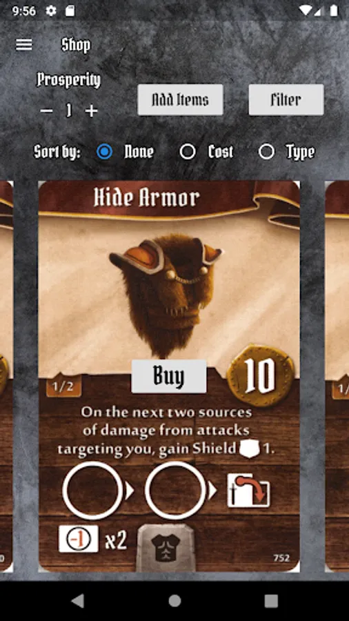 The Gloomhaven deck tracker allows you to easily manage your characters' attack modifier decks, items and the shop deck, freeing up both time and physical space for you to focus on enjoying the gameplay.