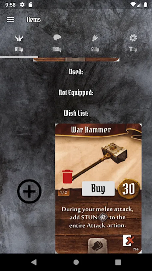 Every character has their own item wish list so that you can plan out future buys without forgetting, and add the items to your character's arsenal easily.