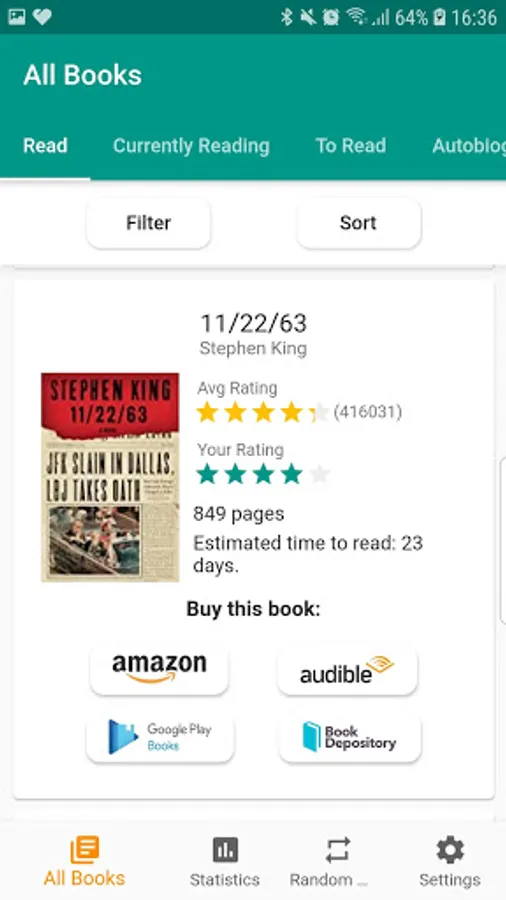 This app is a handy tool that allows you to sort, filter and search through your Goodreads bookshelves to find the perfect book for you.