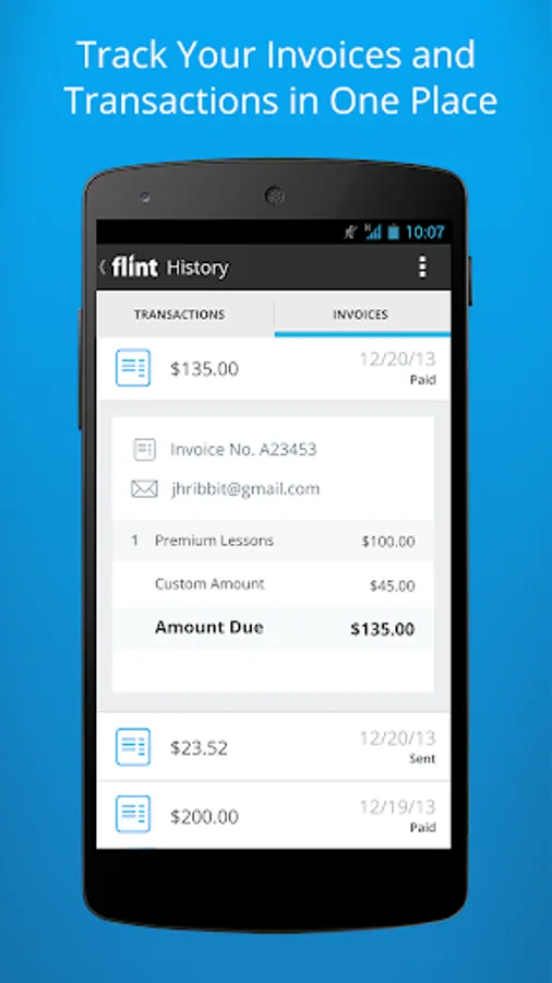Flint enables you to get paid instantly via invoice, on a website, in a mobile app or on social media. Send free mobile invoices right from the app. Your customers get an email with a “Pay Now” button that opens a secure web page where they enter their credit card info and complete payment in seconds. Flint automatically follows up with customers if they haven’t paid by the due date so you don’t have to.