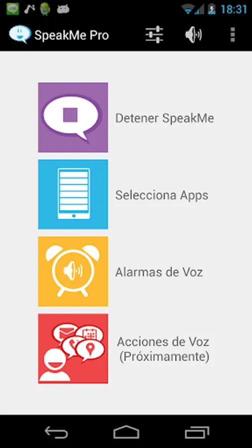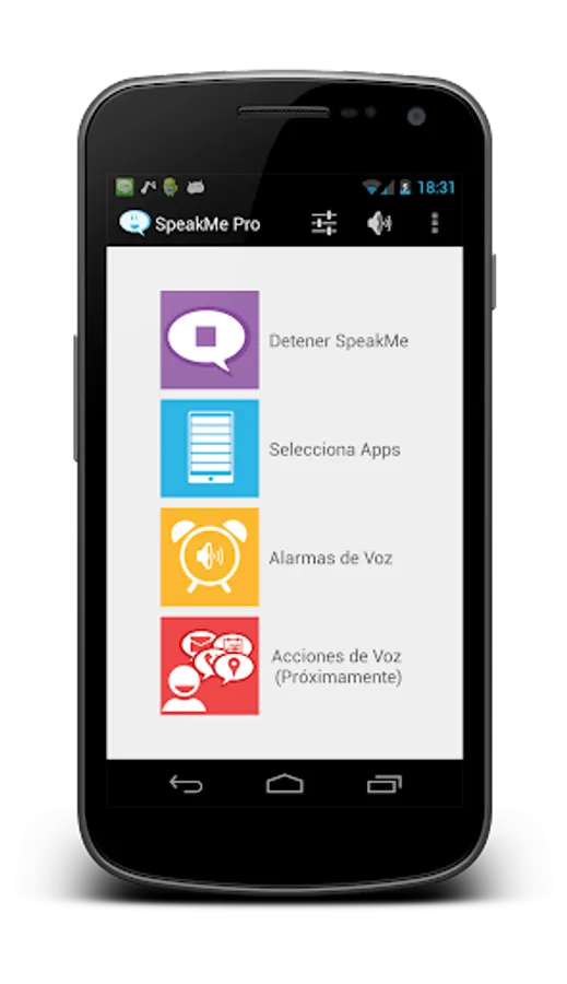 SpeakMe allows your phone to talk their notifications. But not all applications, only those that you want. Select them from the list. Ideal for times when you can not use the phone directly but you might find that it's happening on it. Listen who speaks in messaging apps like WHATSAPP or LINE, who write in your FACEBOOK WALL or subject of an email are examples of the use of this app.