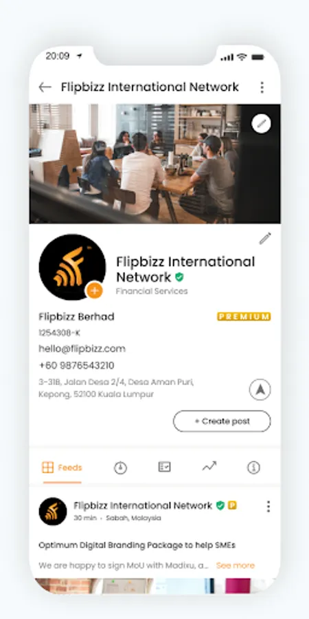 Flipbizz is providing solutions for the problems mentioned above. Individual and organization e-profiles enable the public to know more about you and your company with a glance, making the process of networking enjoyable for everyone. Public and private feeds are categorized accordingly for users to be able to manage public announcements and private group messages. The Phonebook in Flipbizz allows private and group messaging and it syncs with your phone contacts. Newly added phone numbers in the Phonebook will be notified to users if the contact is linked to a Flipbizz account.