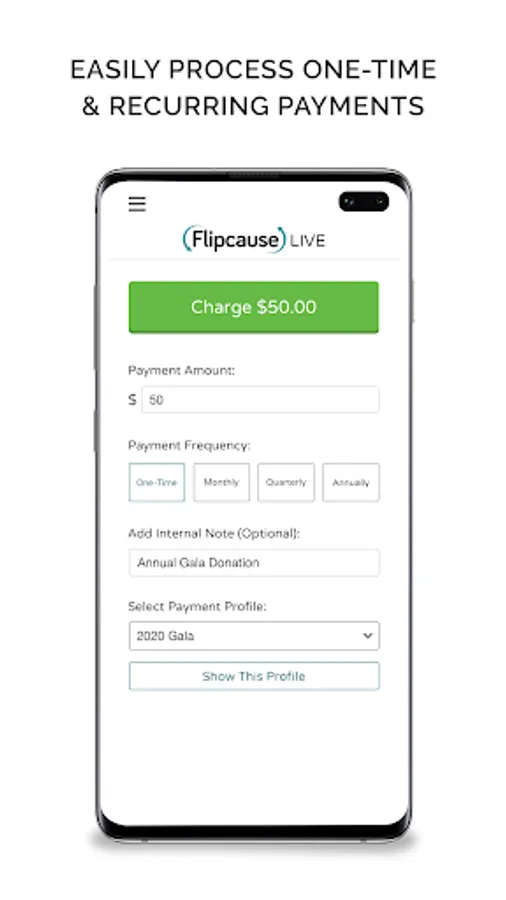 Flipcause LIVE is a perfect mobile payment solution for your live events. Easily accept and process payments for event tickets, admission, and merchandise through your Flipcause account, and check in volunteers and event registrants through a friendly, easy to use interface.