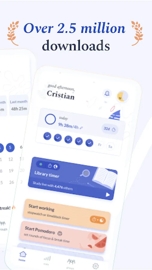 Join Live timed focus and study sessions with your friends, clubs, and popular studygram influencers!