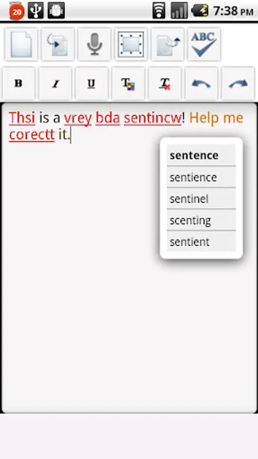 A spell checker application to easily spell check text as well as put in some simple html features and then send it off to your favorite application. Allows other developers to easily integrate this editor into their applications with intents.