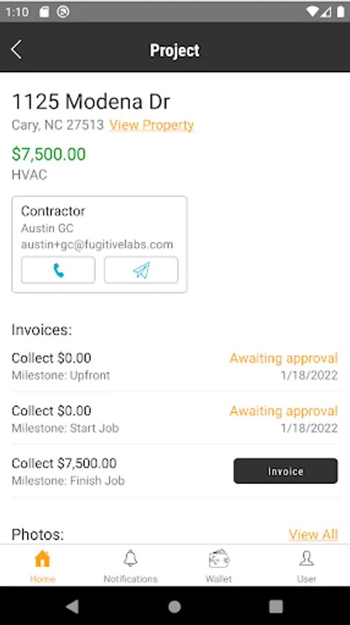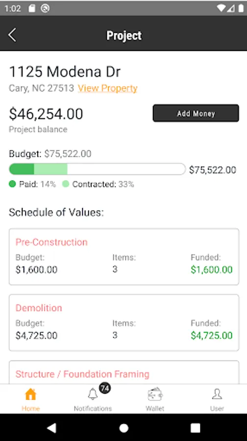 Construction is hard—and we believe cash flow is at the root of all project problems. BuildWallet removes the stresses from project cash flow, and allows Contractors to focus on the work they love. In addition to removing cash flow stress, the reduction in time spent on invoices, change orders, and payments will be immense. The app allows for paperless accounting, initiating and processing everything through the program itself. It truly is Project Management in your pocket!