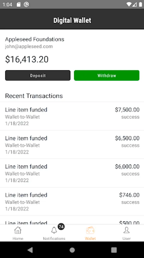 This is the first end-to-end Fintech app that handles the direct payment of Subcontractors and Material Providers. Upon approval of an invoice, funds are automatically transferred to the recipients’ Digital Wallet. Upon receipt, they can transfer them to their bank through a next-day ACH transfer. No more paper invoices or checks!