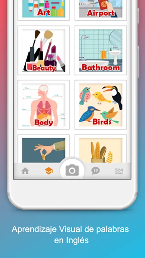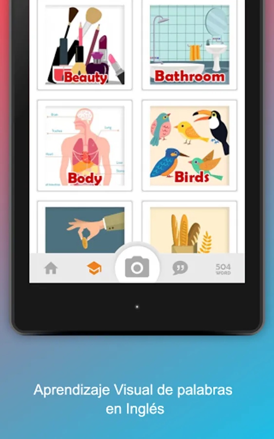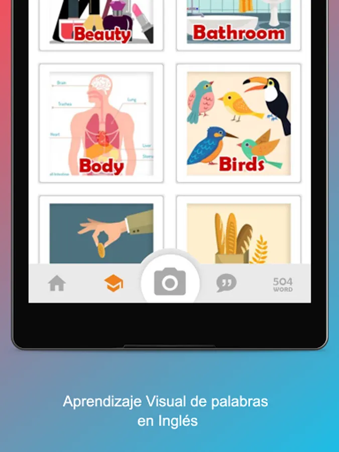 ● Learn 504 special words in English with complete and varied explanations in English and Spanish along with pronunciation.