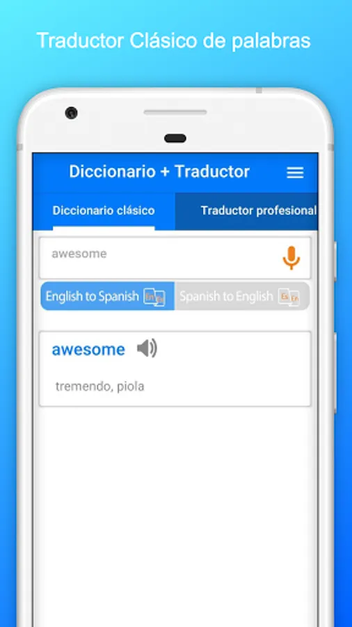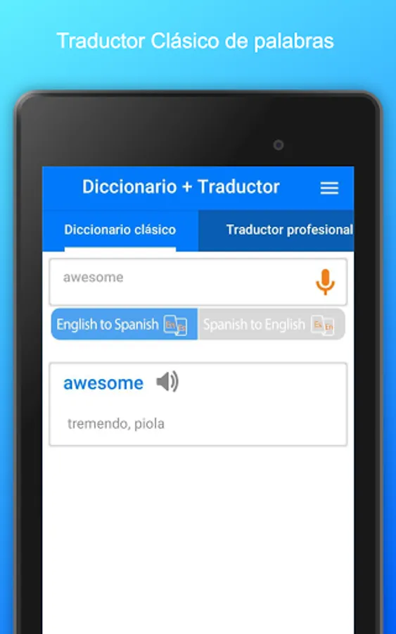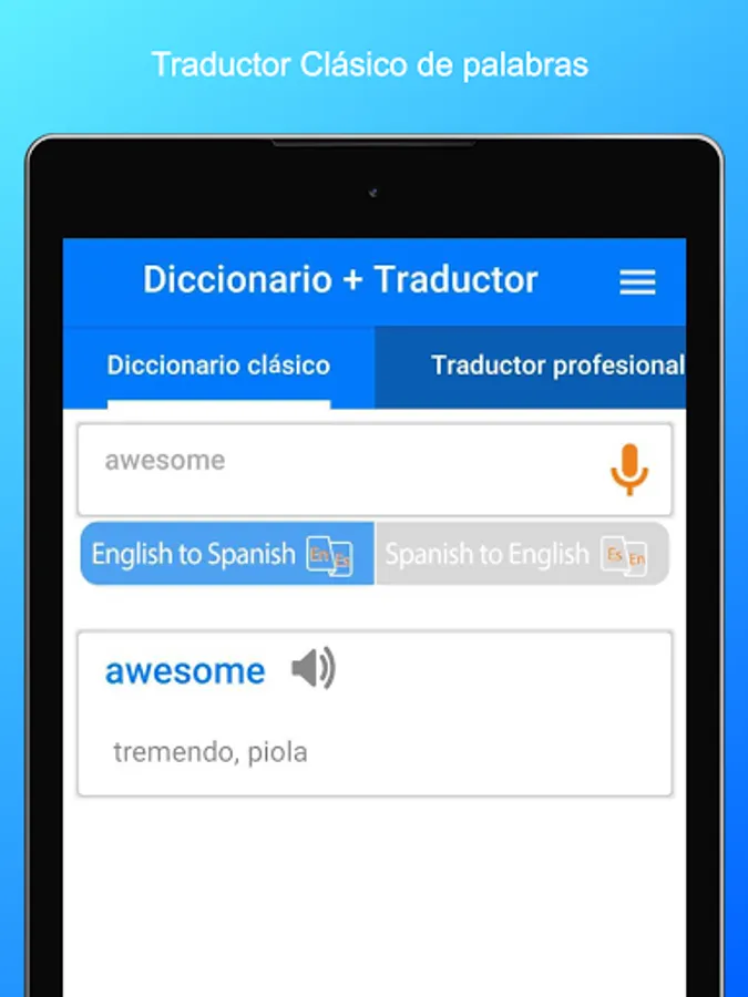 ● Professional translator of texts from Spanish to English with its pronunciation, usable with microphone.