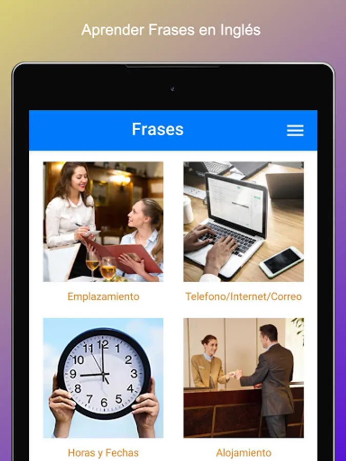 ● Learn English from day one with around 2000 phrases ready and used for different situations with meaning and pronunciation ordered by categories of use.