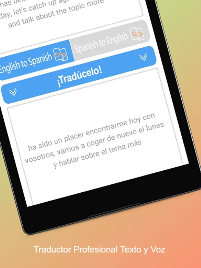 ● Professional translator of texts from English to Spanish with its pronunciation, usable for voice conversations.