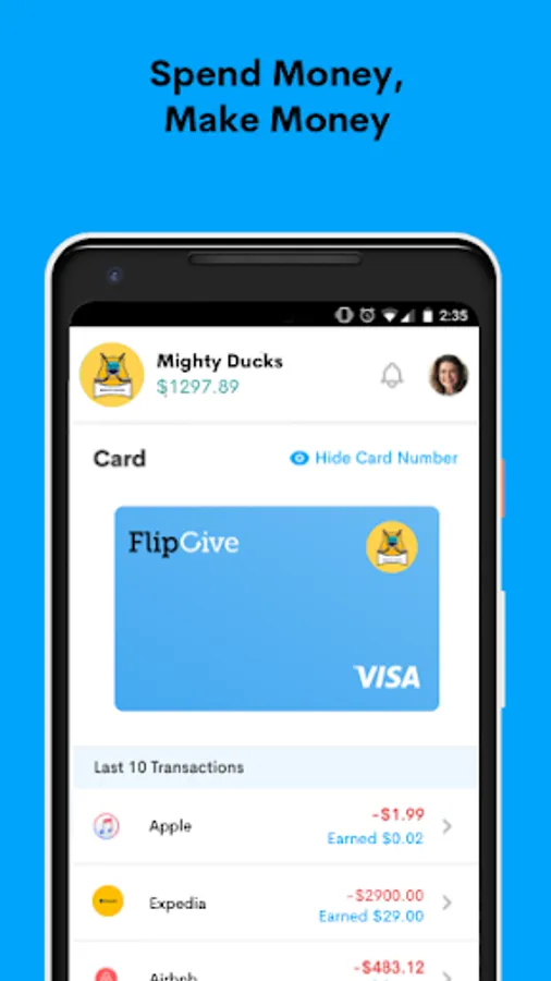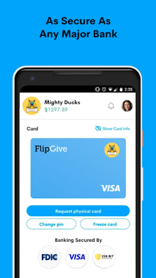 FlipGive banking is a banking app and cashback debit card built for teams. No monthly fees. Centralize team spending while earning cashback on every purchase, all season long.