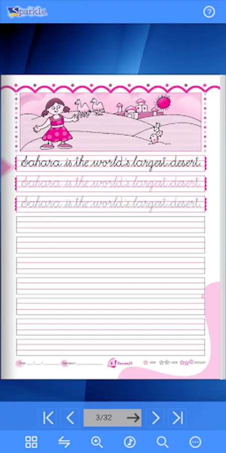 Open and interact with Sparkle Cursive - 3 e-books. The e-reader app has important features for using e-textbooks in the classroom.
