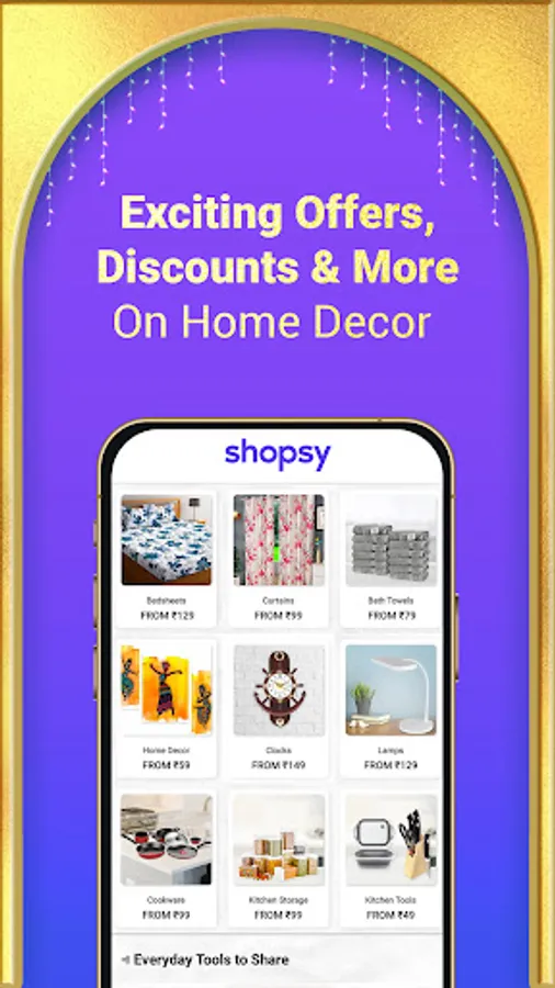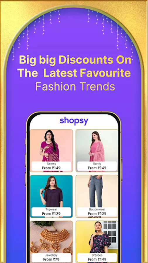 Shopsy Shopping app offers the trendiest items in fashion, the best in electronics at wholesale prices. Shop top-notch quality items at up to 80% Off; Fashion starting at Rs. 99, Beauty starting Rs. 49, and Electronics at up to 80% off
