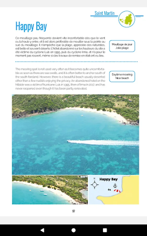 Lovers of the sea, tourists and inhabitants of the island of Saint-Martin in search of information on the sea and its activities, find in this application and its interactive guide all the practical and technical information on the world of the sea. nautical industry, the best anchorages, the marine environment, the nautical and tourist activities proposed in Saint-Martin and the surrounding islands, as well as a functional directory of about 20 pages bringing together the professionals concerned by these fields of activities .