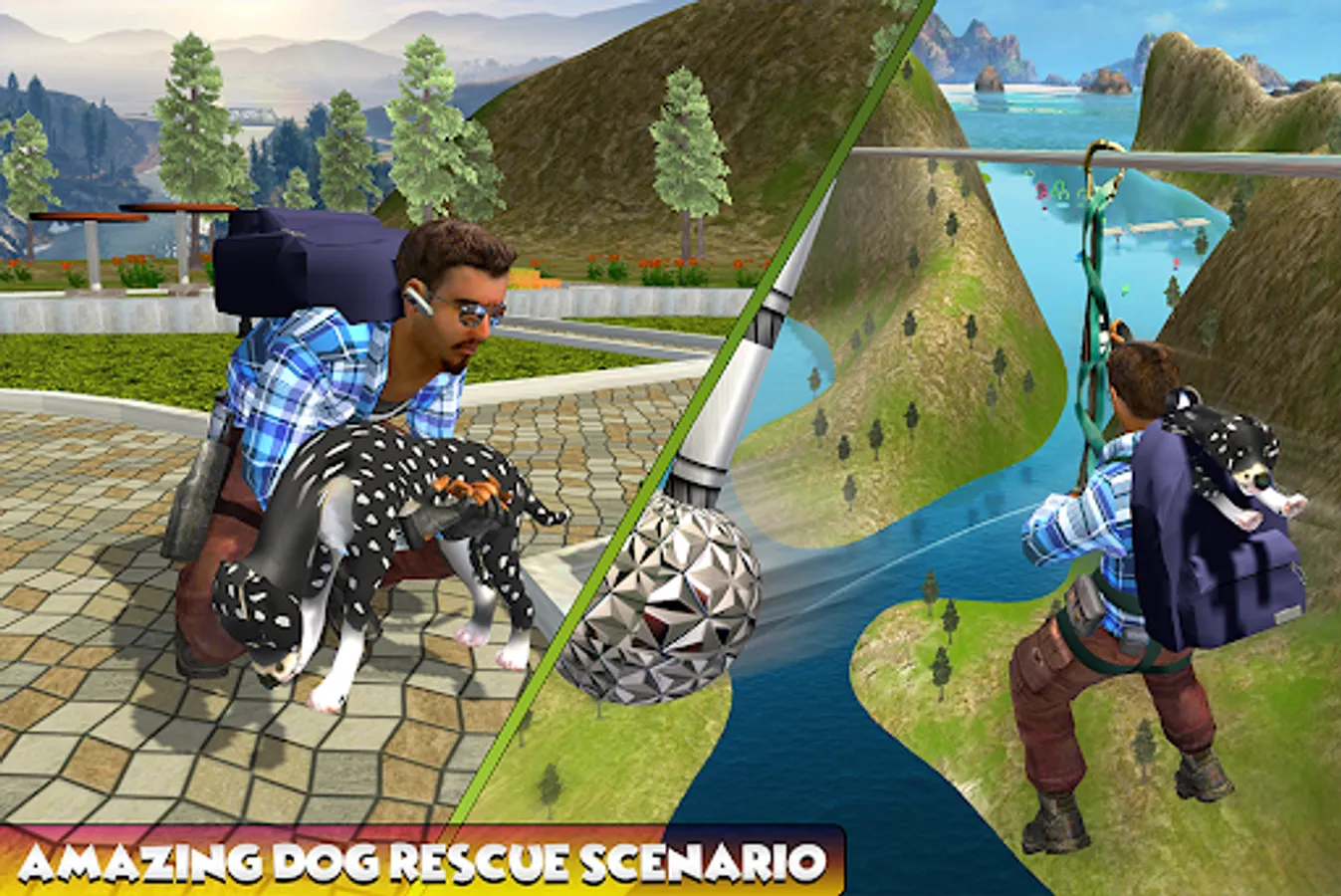 Help the dogs is entertaining game with interesting gameplay where you play dog savior and help these pets. Select your favorite mode like you can play as human savior as well as dog savior. In human mode you can save the dog in the mountain and move toward city with the help of zipline. In second level save the dogs in snow mountain area with the help of ice snowboard. You can also enjoy jetski water surfing to save the dog in island by playing this big Dog vs small doggy simulator 2022.