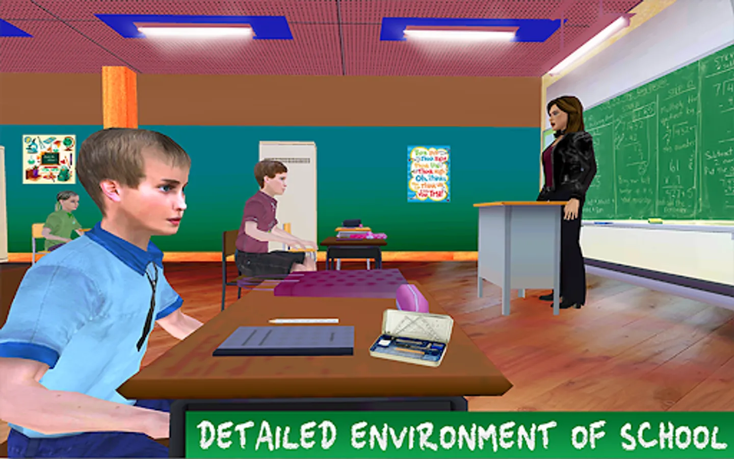 Enjoy the modern way of learning in school life adventure where you play as high school boy and complete different school activity by playing school adventure game. Enter in the school and select your level with your touch function. Go to your class and complete multiple chose quiz to unlock next level. Basic Learning Education missions provide you basic concept about your country as well as Universe.