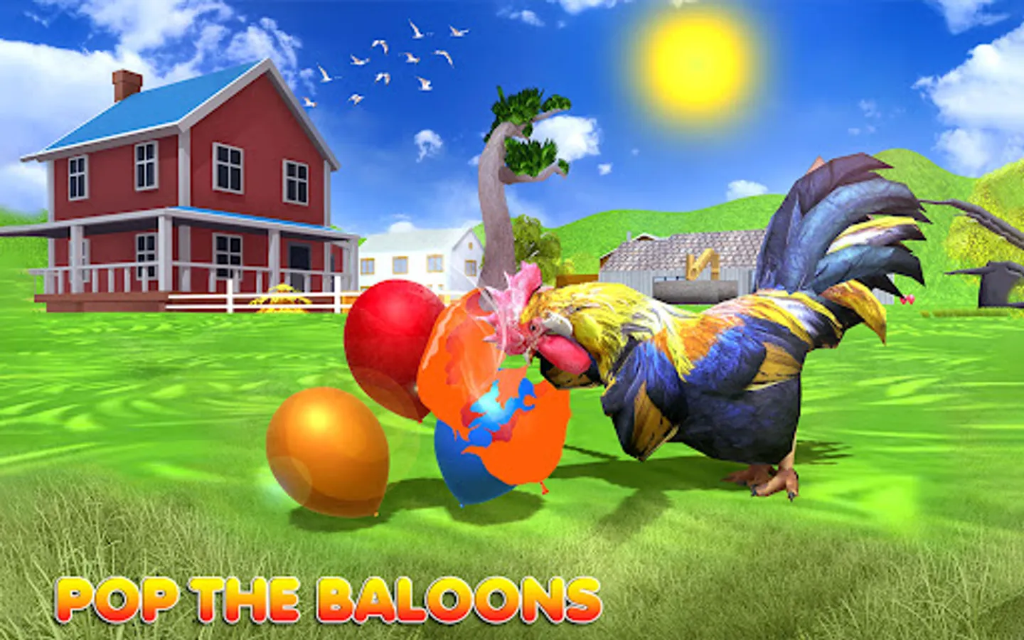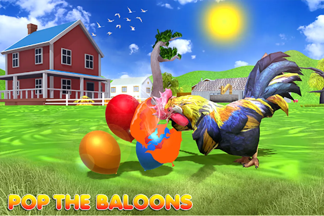 Rooster Simulator Animal Farm Game is designed by keeping in view the interest of funny chicken game fans. Simulating features are added in this rooster fighting games 3d. Angry rooster fighting hero loves pricking and destroying balloons and no one can stop him! The people around farm are not safe from mischief-making of Rooster king. Angry rooster walks in a funny manner in animal dash game. Jungle rooster doodle-dooing when you touch the screen. Jungle rooster eat whatever it like and it can be bugs, worms, corn, plants or flower seeds. Be a part of rooster fight in Rooster fighting games offline. Run and even fly around the lovely hen house and city as roosters of animal running game and rise your breed.