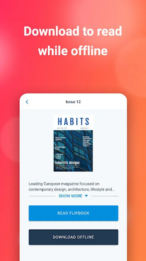 • OFFLINE READING: Download your favourite magazine and read it wherever and whenever you want.