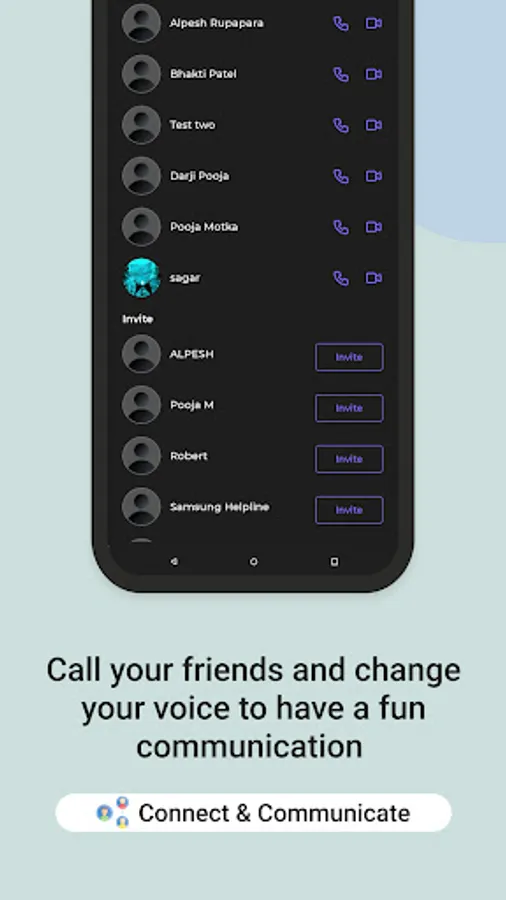 Audio Call - Send an invite and connect over an audio/video call with other users of this audio calling app keeping your identity as secure as you can through voice-changing functionality.