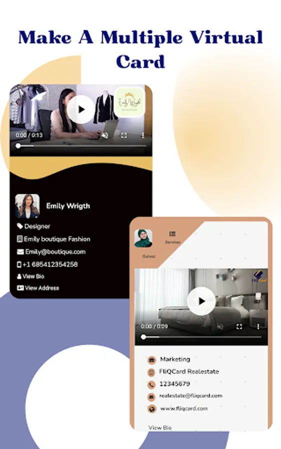 - Customize your virtual business card as much as you want with the help of different themes. Put marketing material stuff like video or PPT, or as short information as you want to, Your information will always be up-to-date.