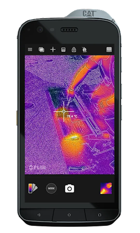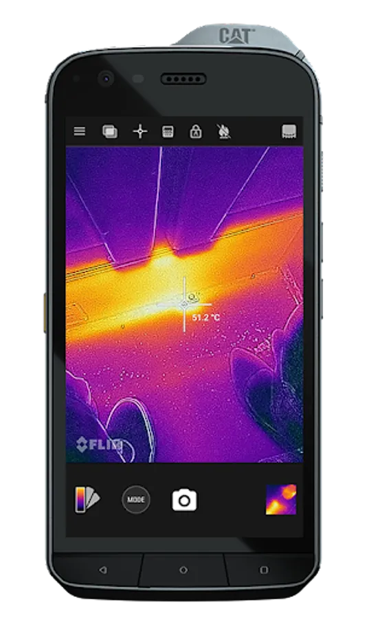 The MyFLIR app controls the integrated thermal camera on the Cat S61 smartphone.