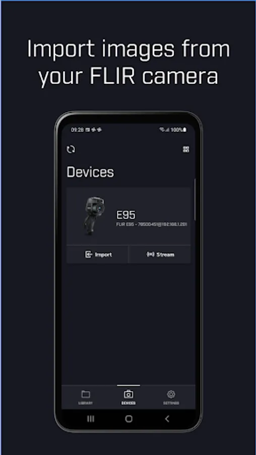 FLIR Tools Mobile is an intuitive app for FLIR cameras, and professional thermographers can use an Android device to see live streaming video and capture snapshots from supported FLIR cameras.
