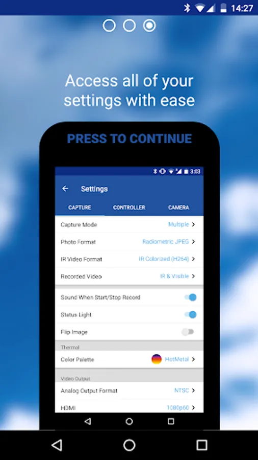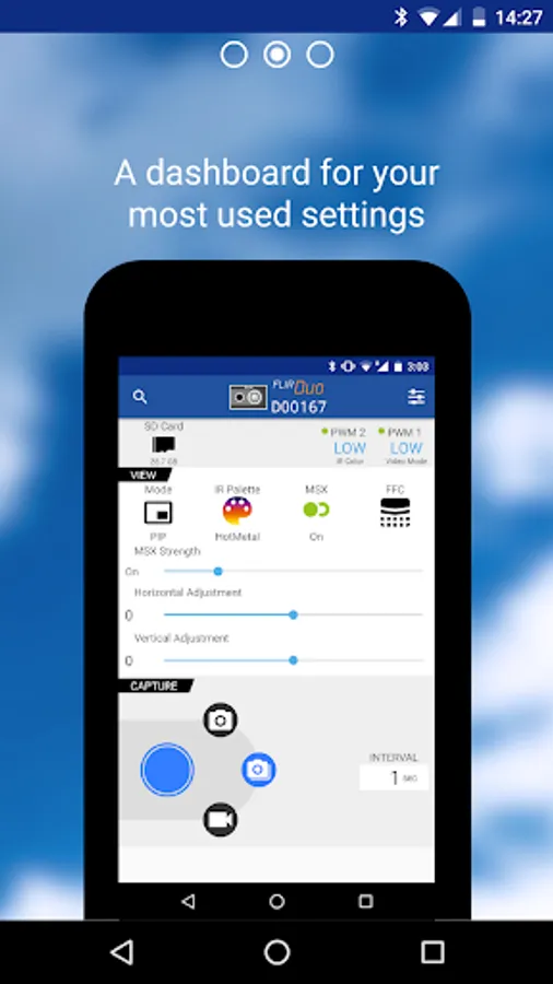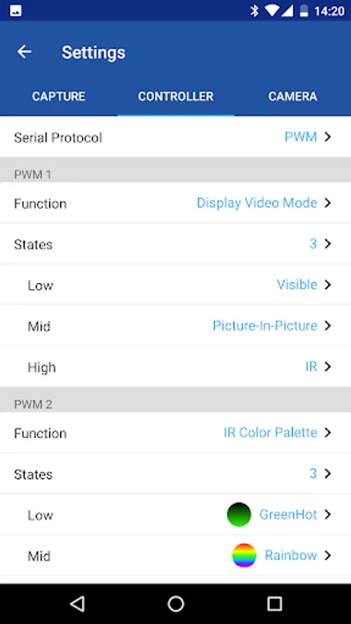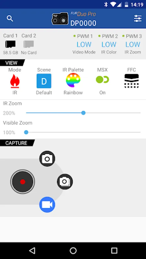 The FLIR UAS app lets you control and configure your camera via Bluetooth from your Android device. FLIR cameras give you in-flight control of functions through direct PWM connections, and their MAVLink geolocation compatibility makes for easy image stitching required for mapping, survey, and precision agriculture applications. The APP will auto configure based on the camera you connect to.