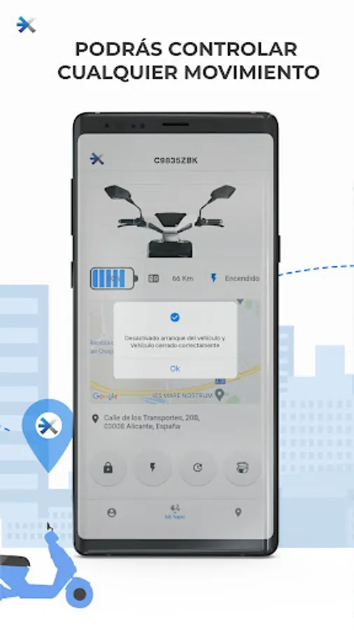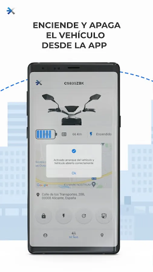 The Next Electric Motors app will allow you to have total control of your motorcycle, knowing at all times its GPS position, the state of charge, the kilometers traveled and all the necessary information about your motorcycle.