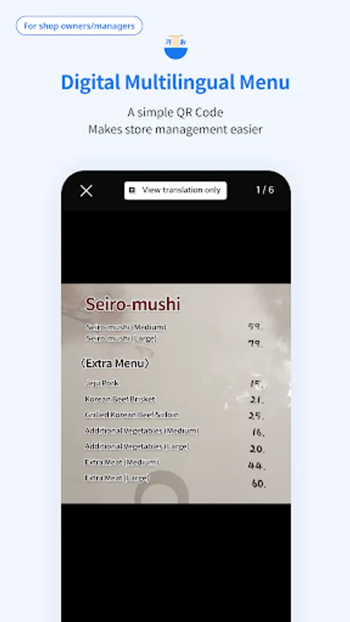 Upload a picture of your store's menu, and we'll translate it and create a QR code for you.