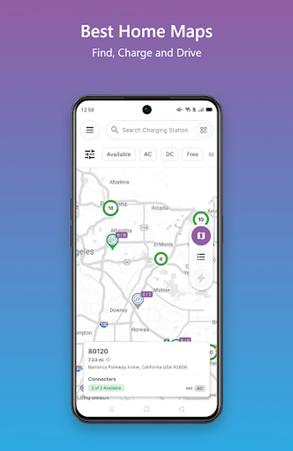 - Default Map with site cluster and with port status: The map view displays charging ports as clusters, making it easier to find the nearest one.