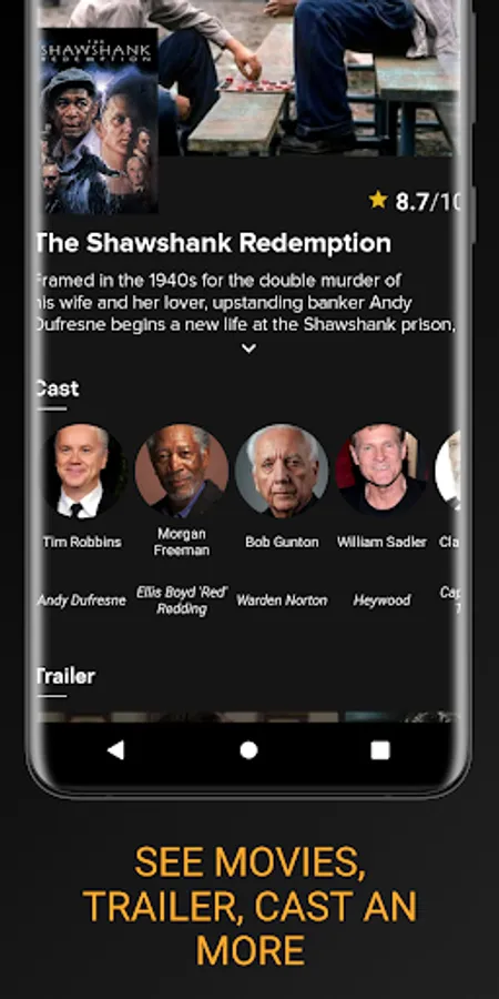 In the application, you cannot watch films and series for free, but you can find in the application a complete description of the series and films and also the service on which you can watch them.