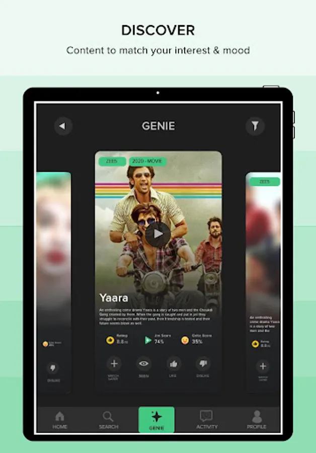 A Genie (gini) which helps you discover the best movies, shows and streaming content, Hence the name Flix Genie.