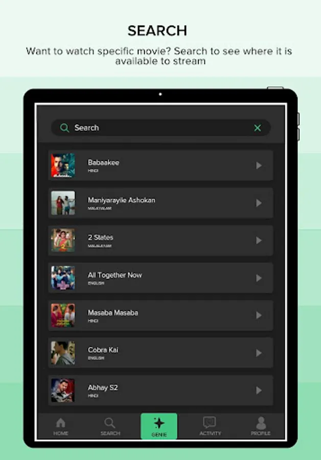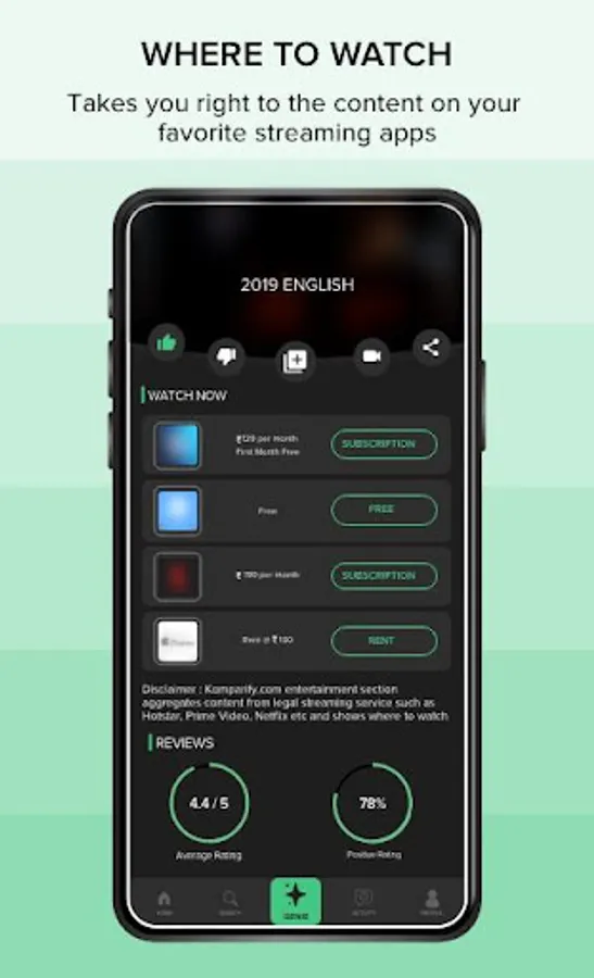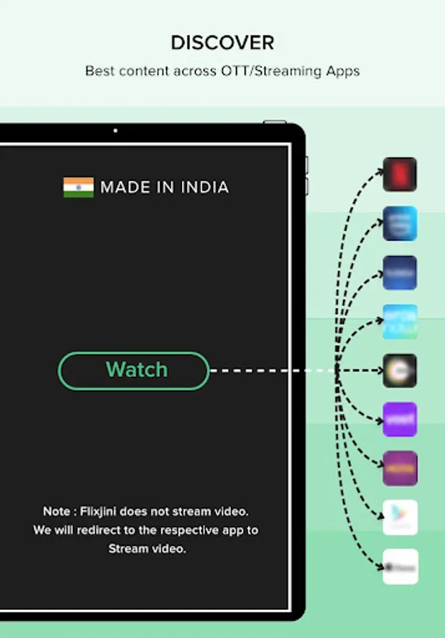 Flixijini aggregates *legal* content from all streaming apps. It helps you discover movies and shows to stream online and helps you decide: