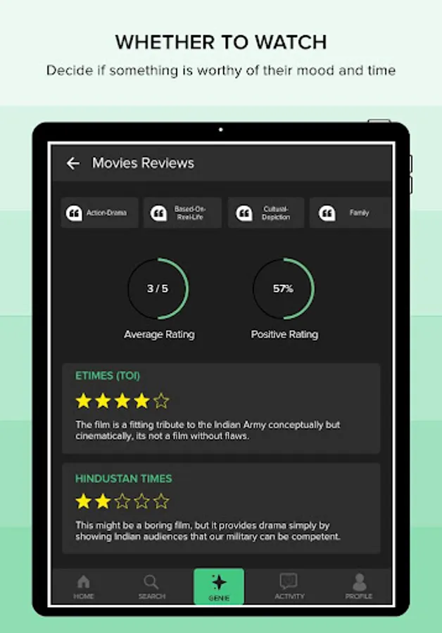 Life is too short to waste on watching bad movies and shows. Flixjini aggregates ratings and reviews to help you decide whether to watch this movie/show or not.